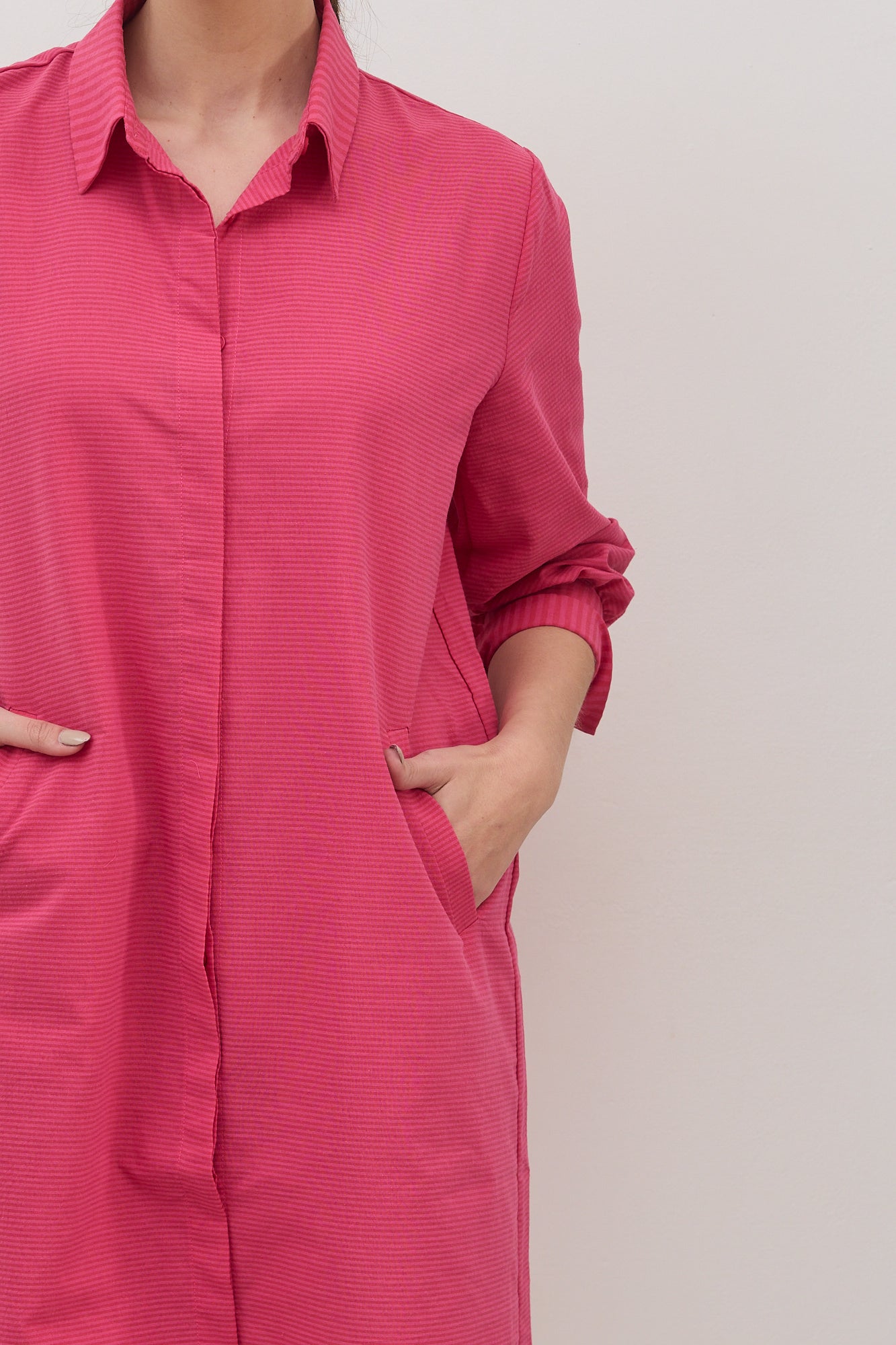 לאורך השמלה כפתורים נסתרים להשלמת המראה האצילי והנקי וכמובן כיסים כי איך אפשר בלי?!