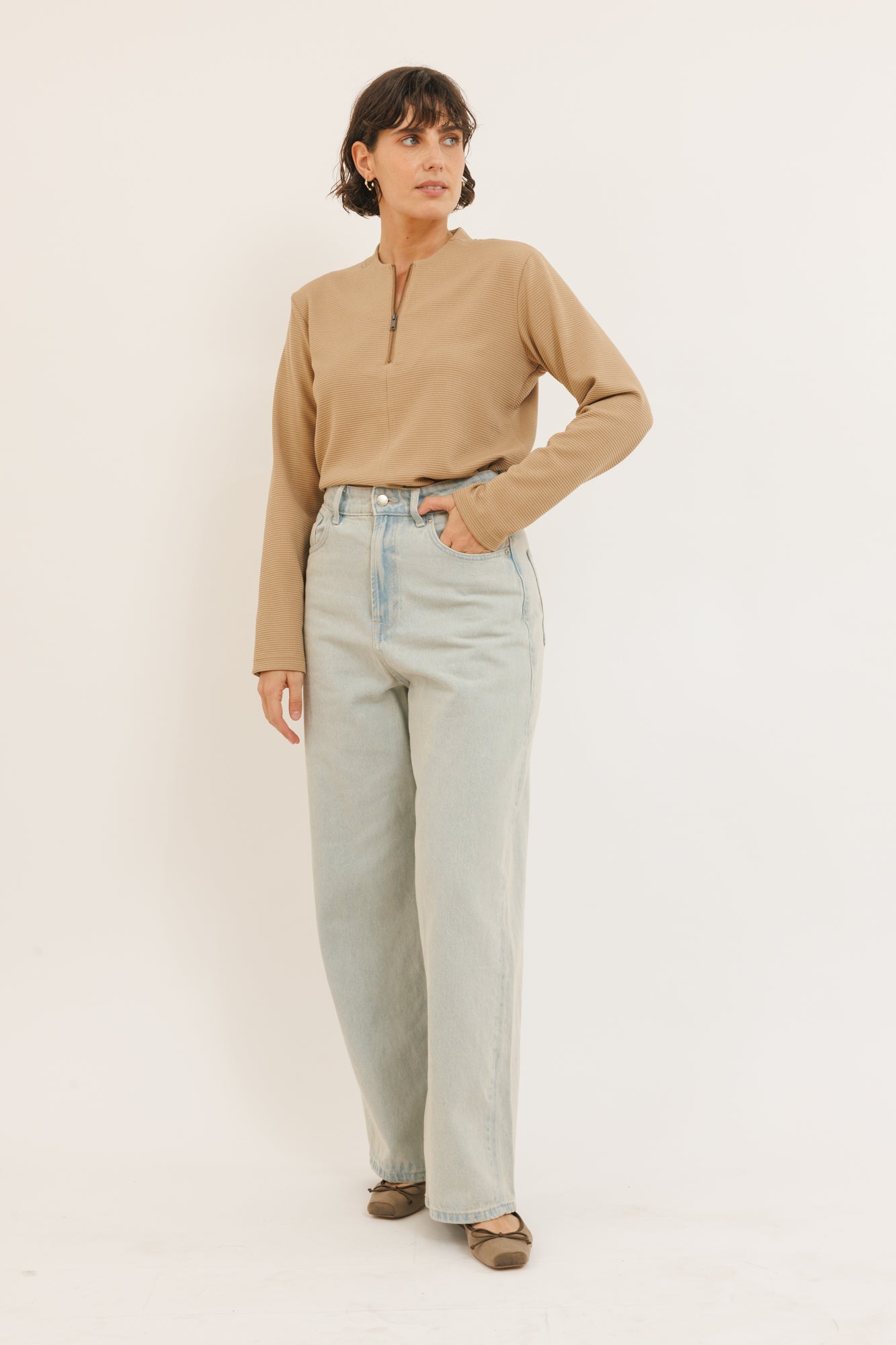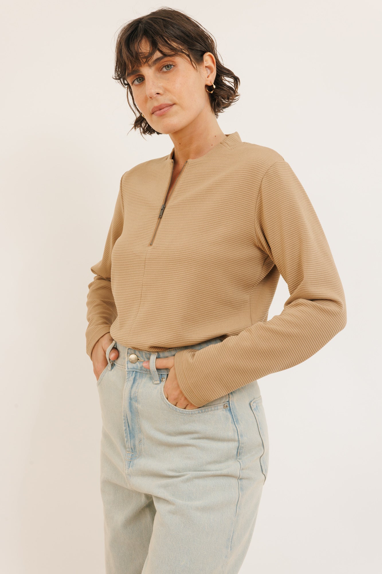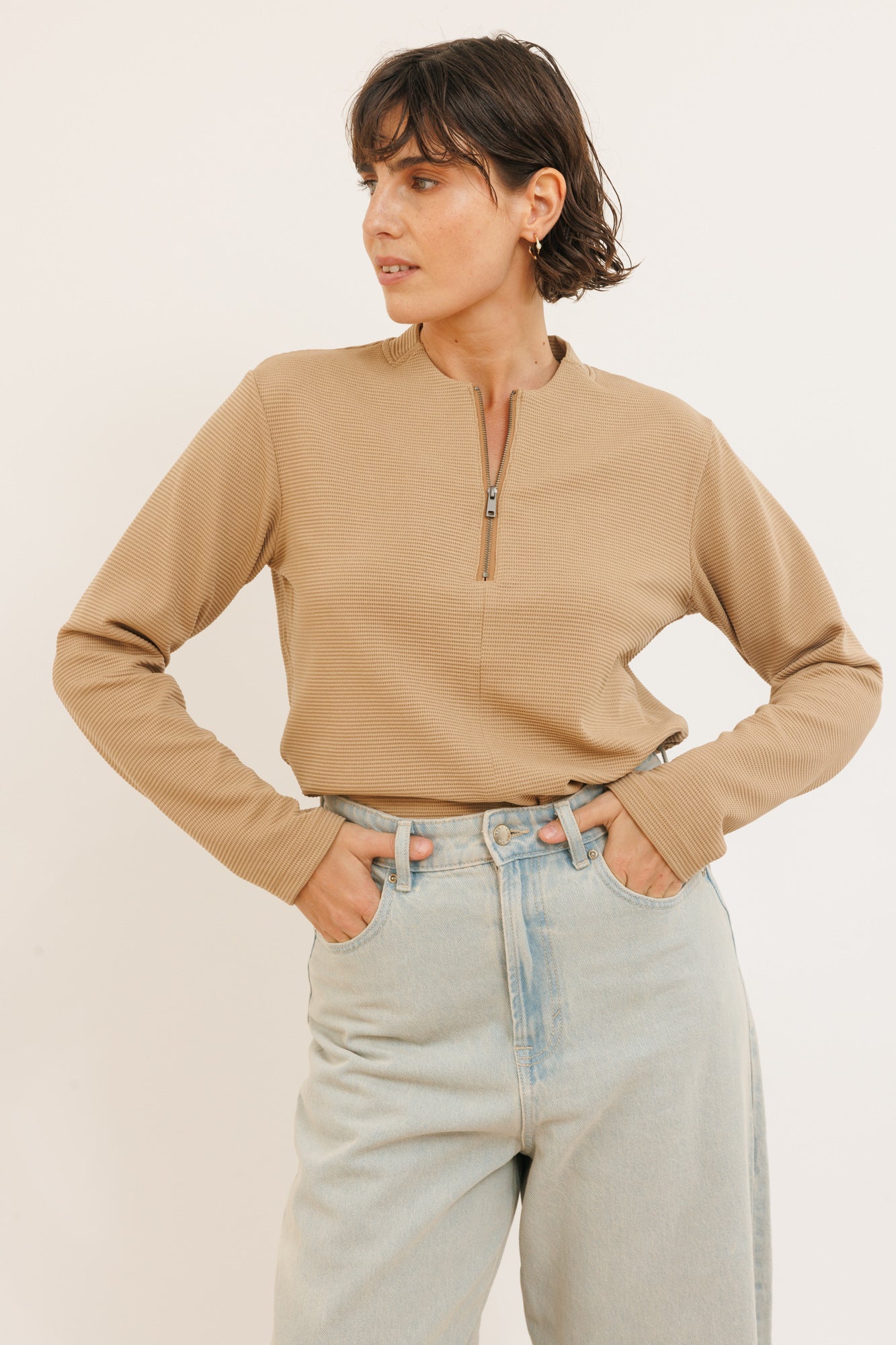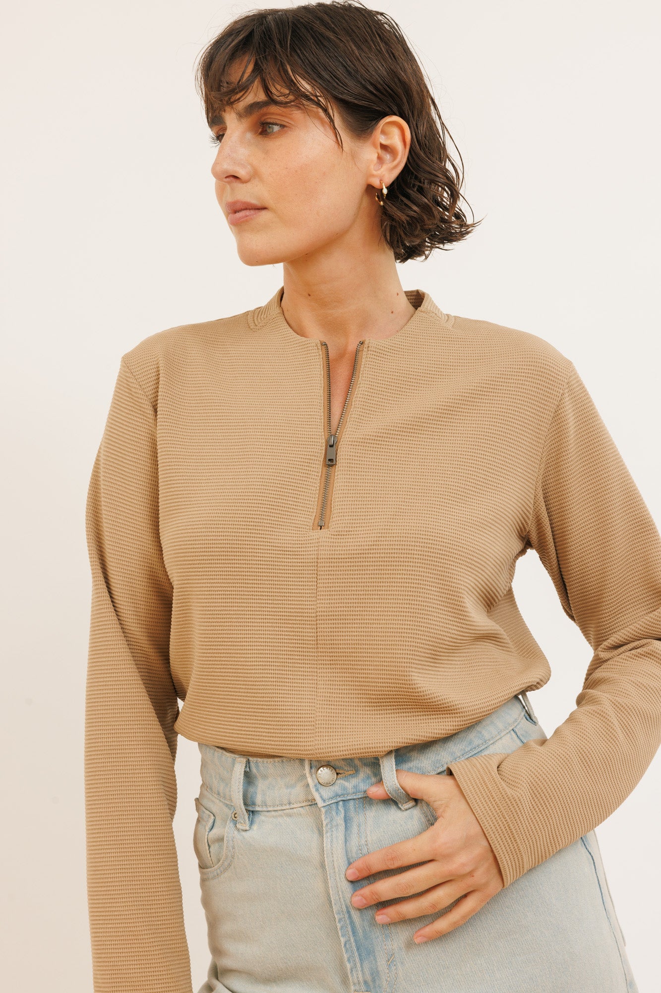 Color חולצת ליז שרוול ארוך מוקה