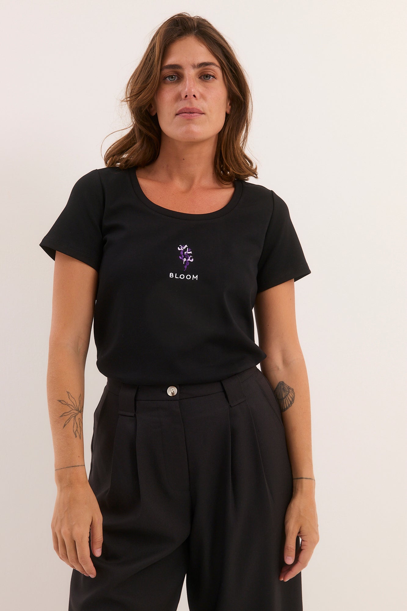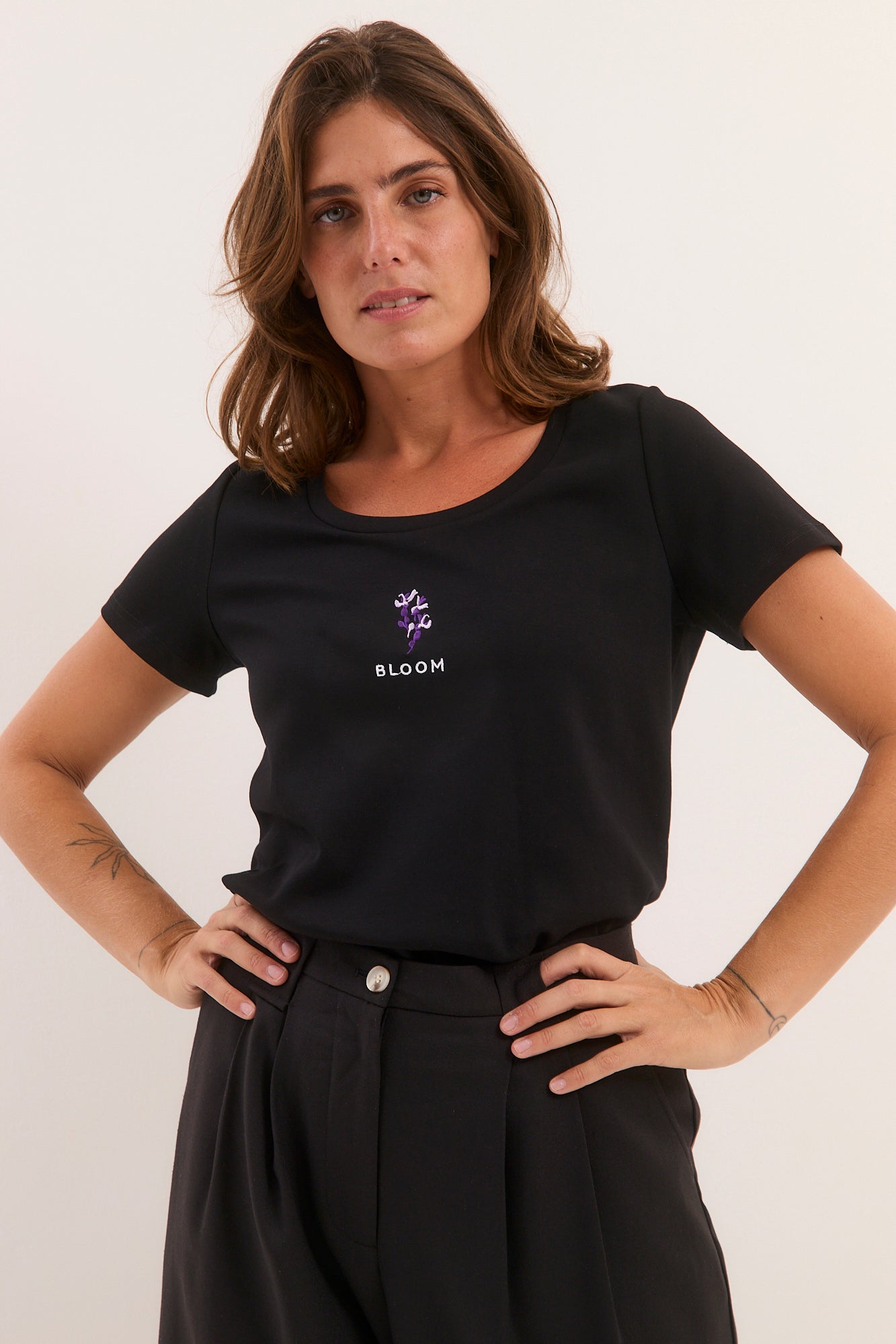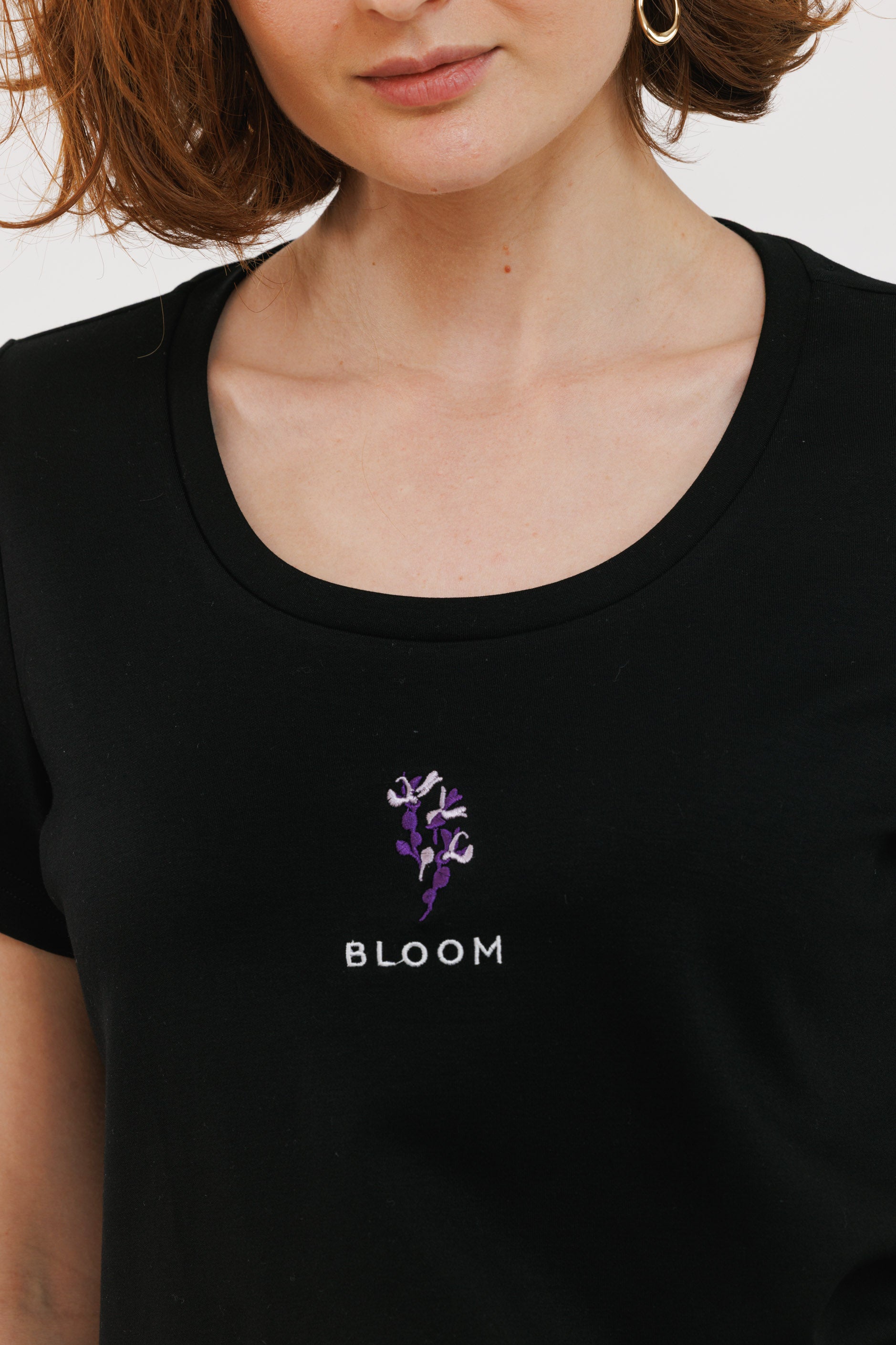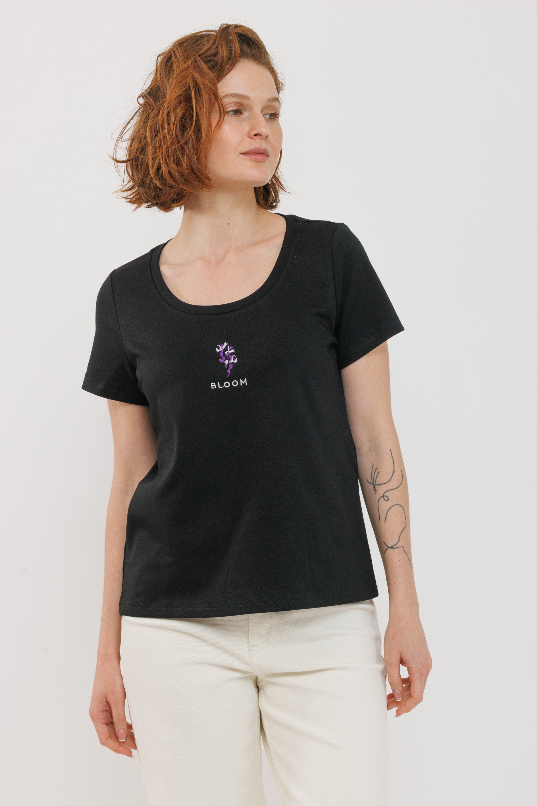 חולצת רקמה שחורה פריחה