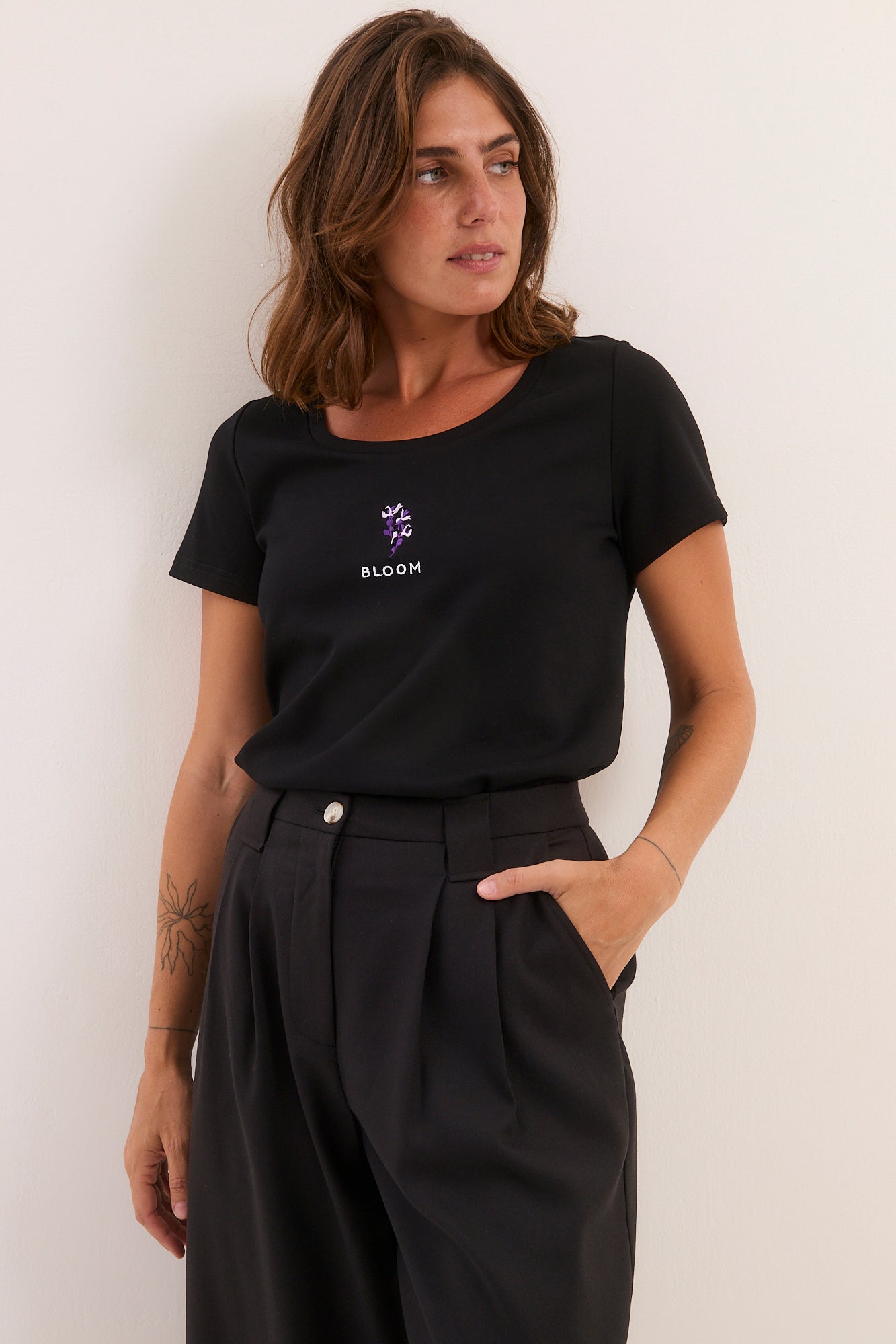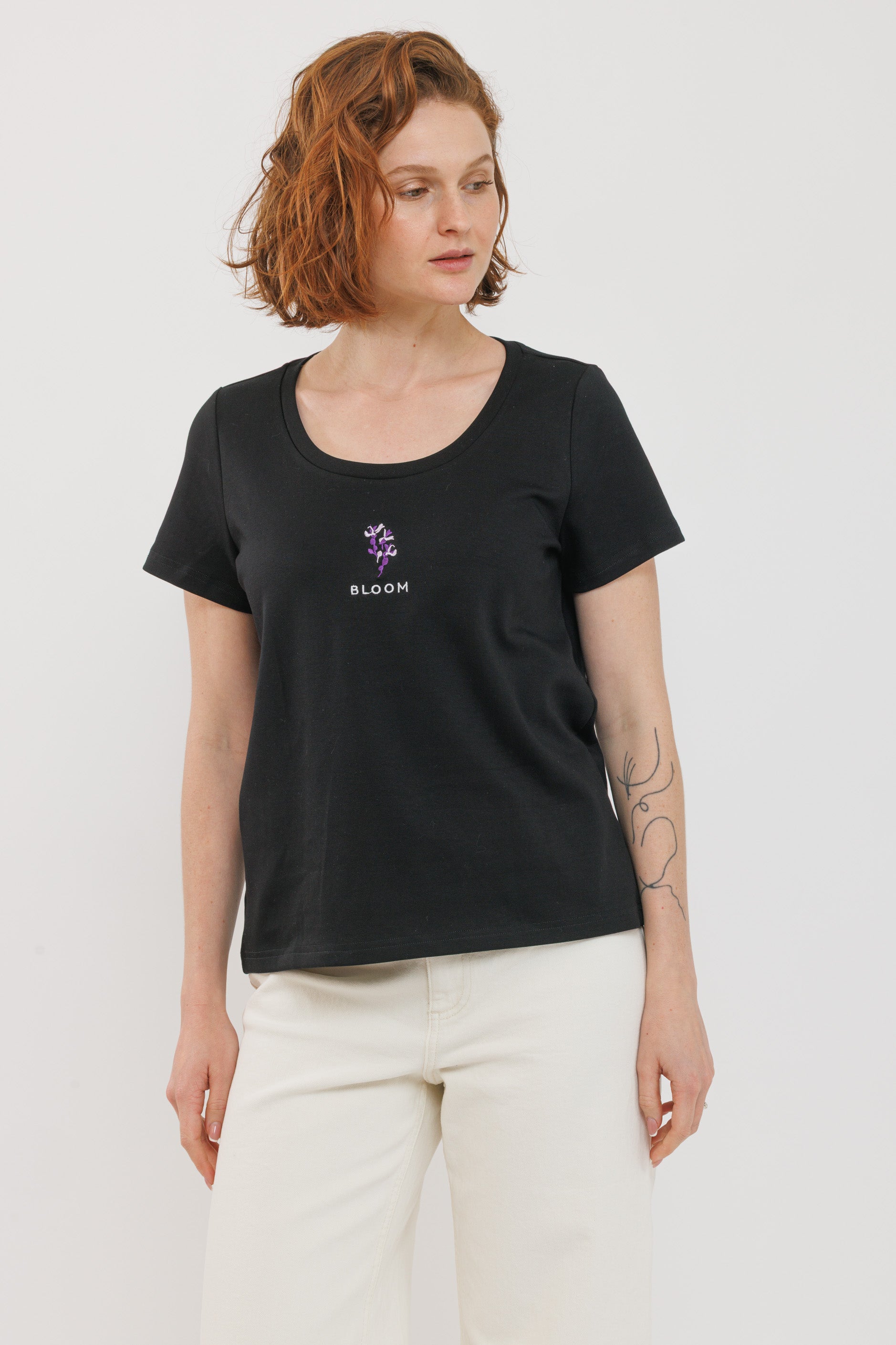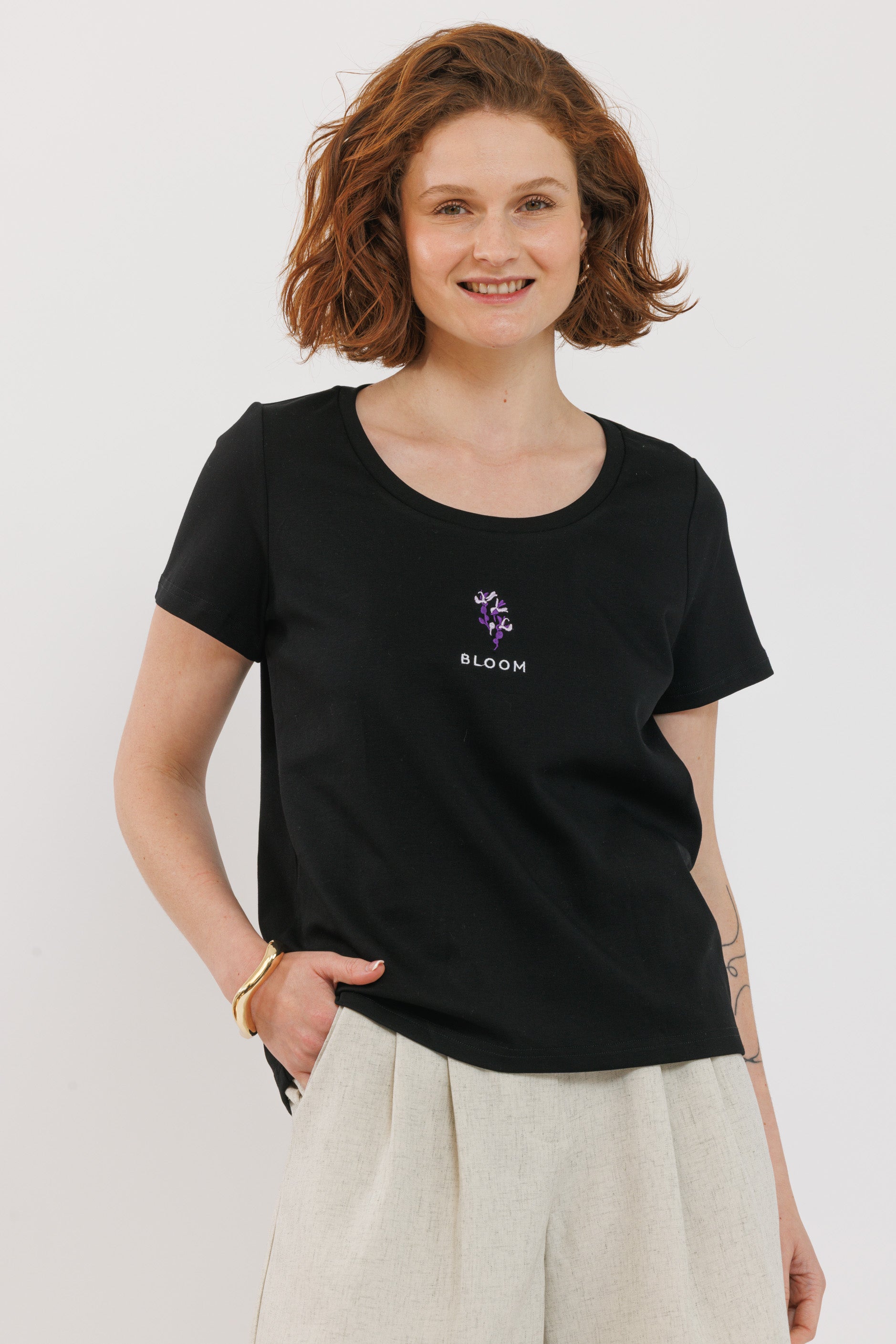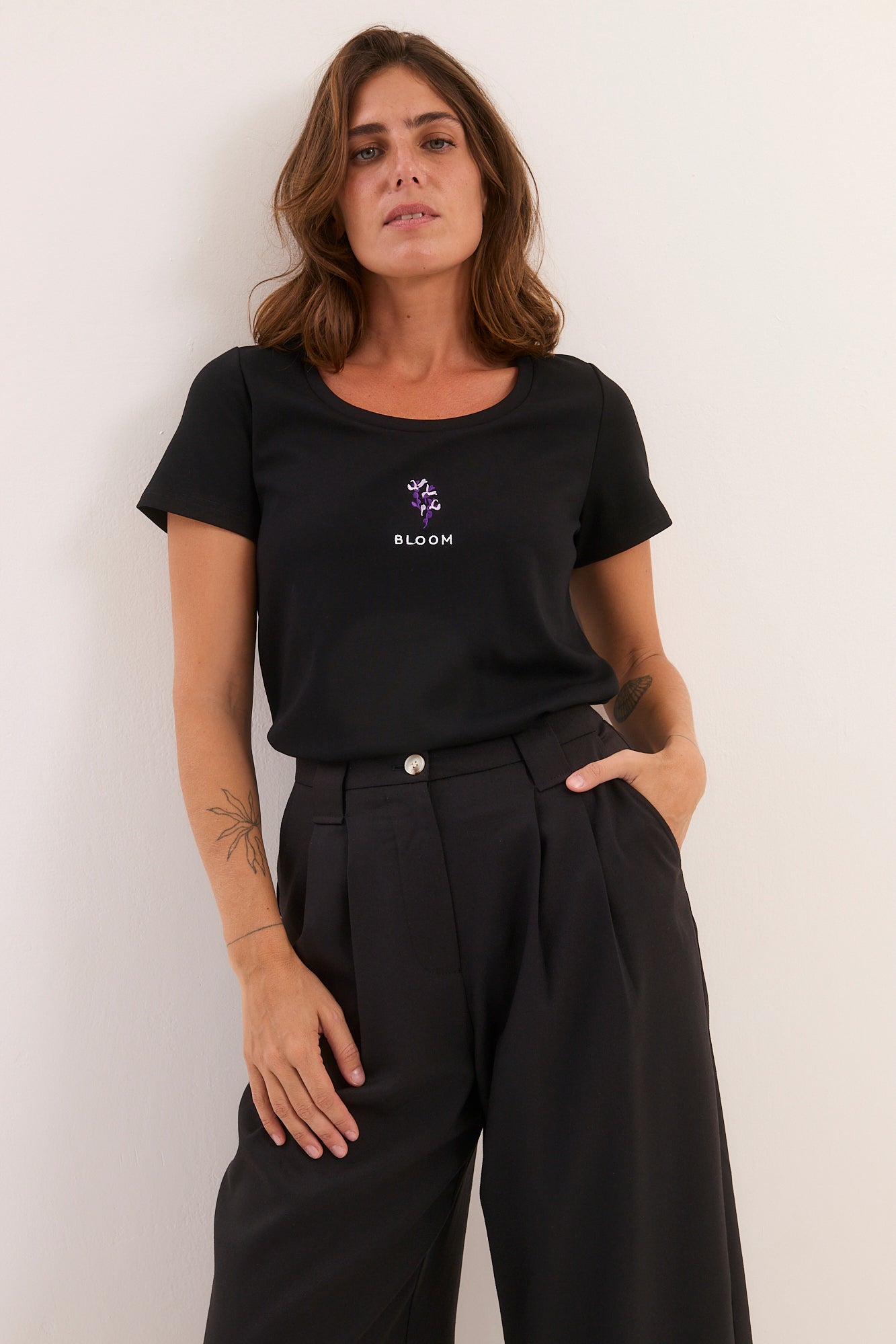 חולצת רקמה שחורה פריחה
