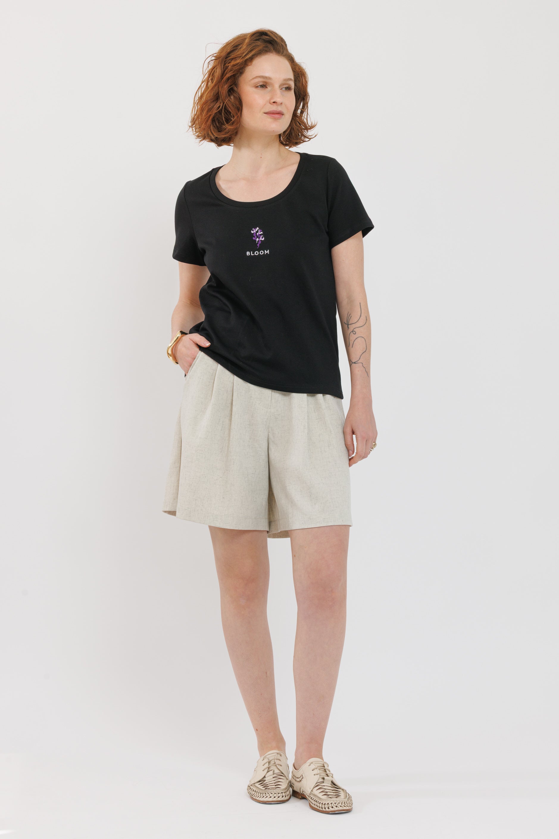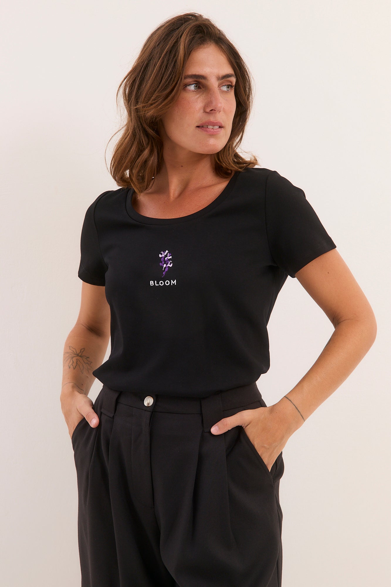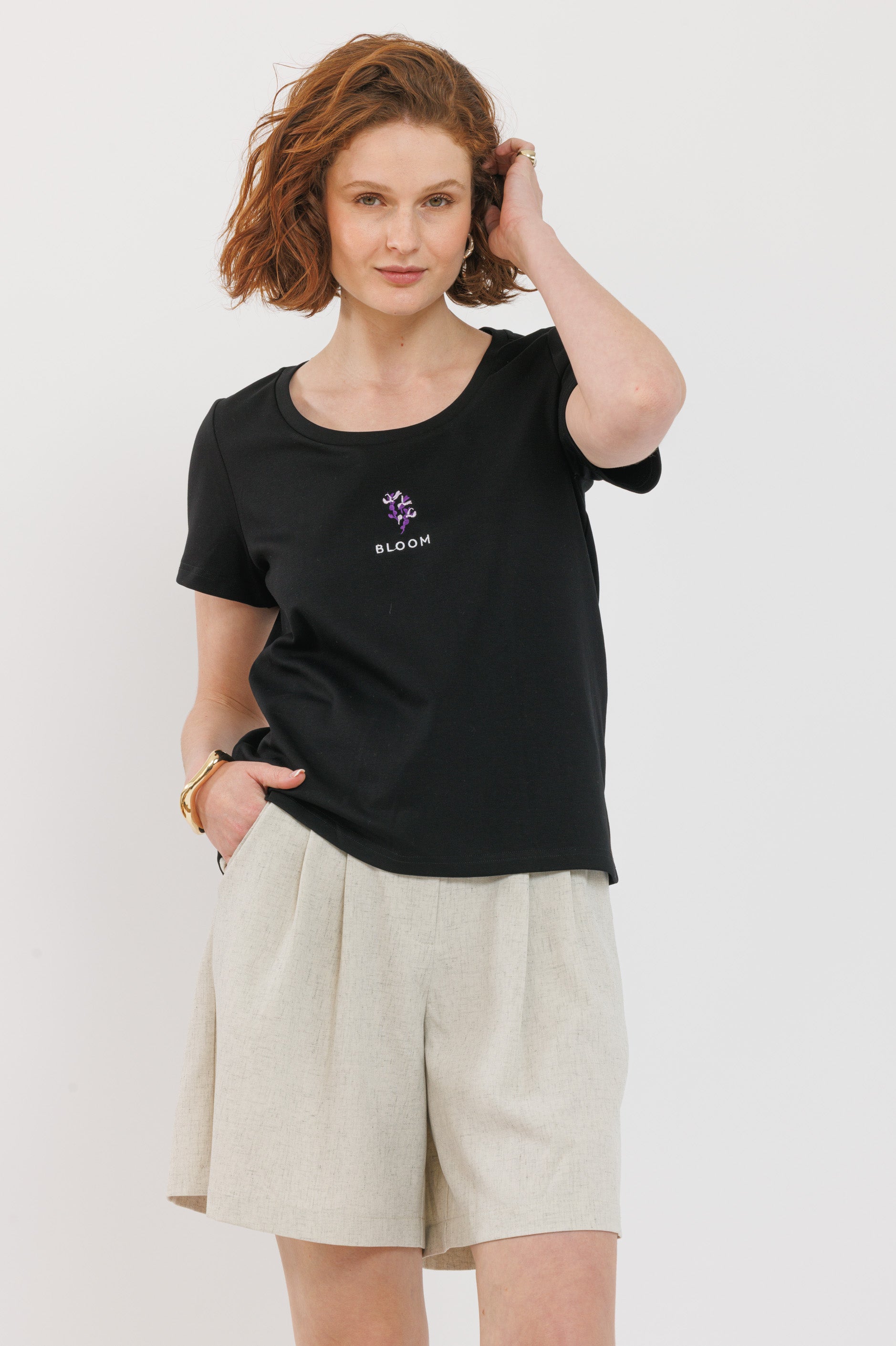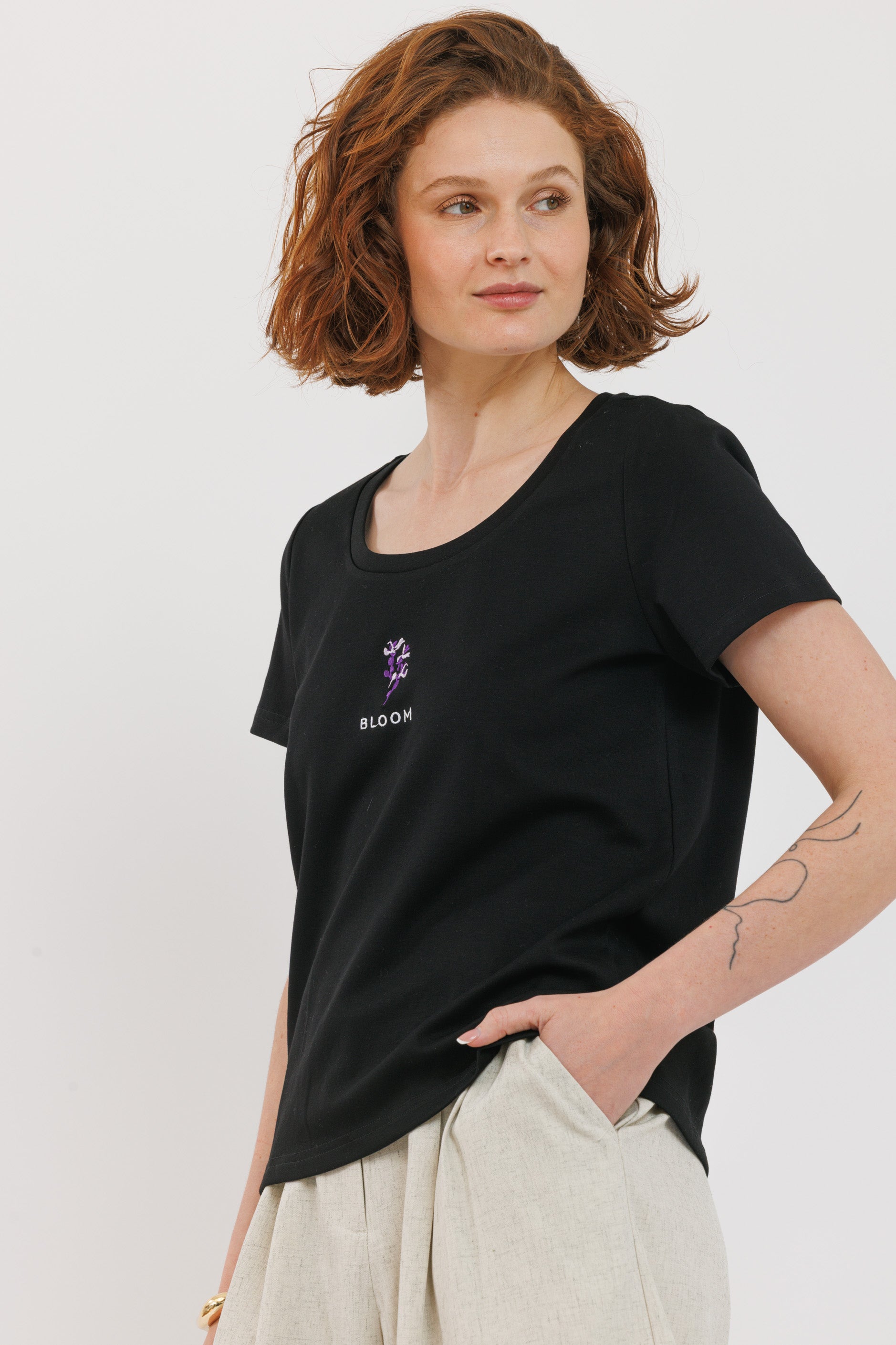 חולצת רקמה שחורה פריחה