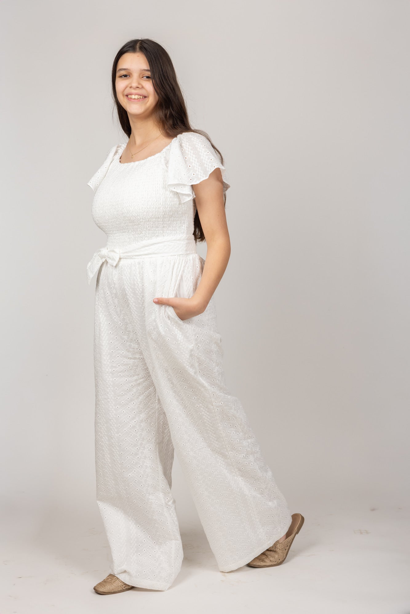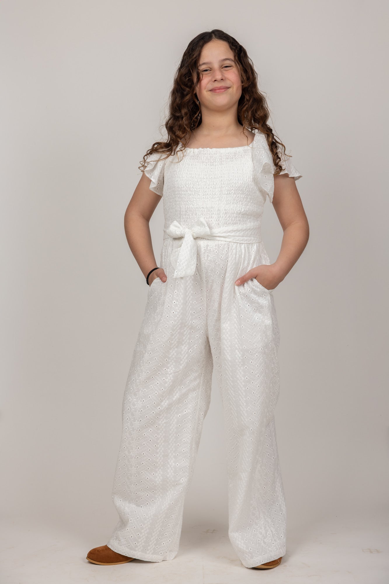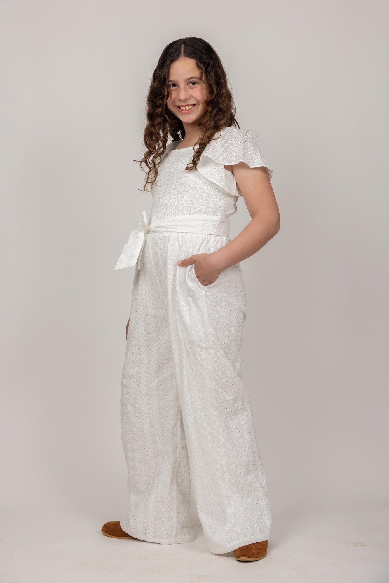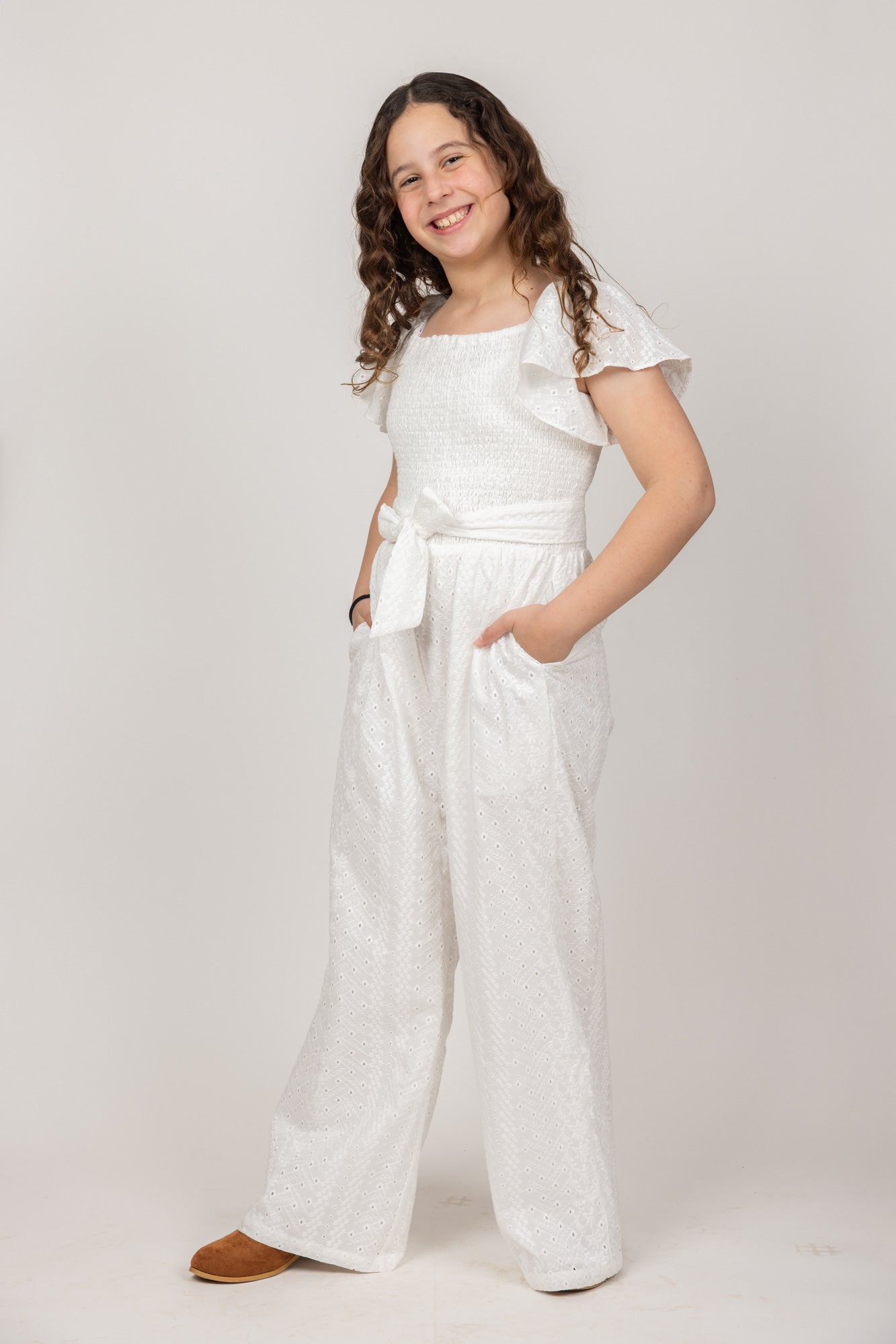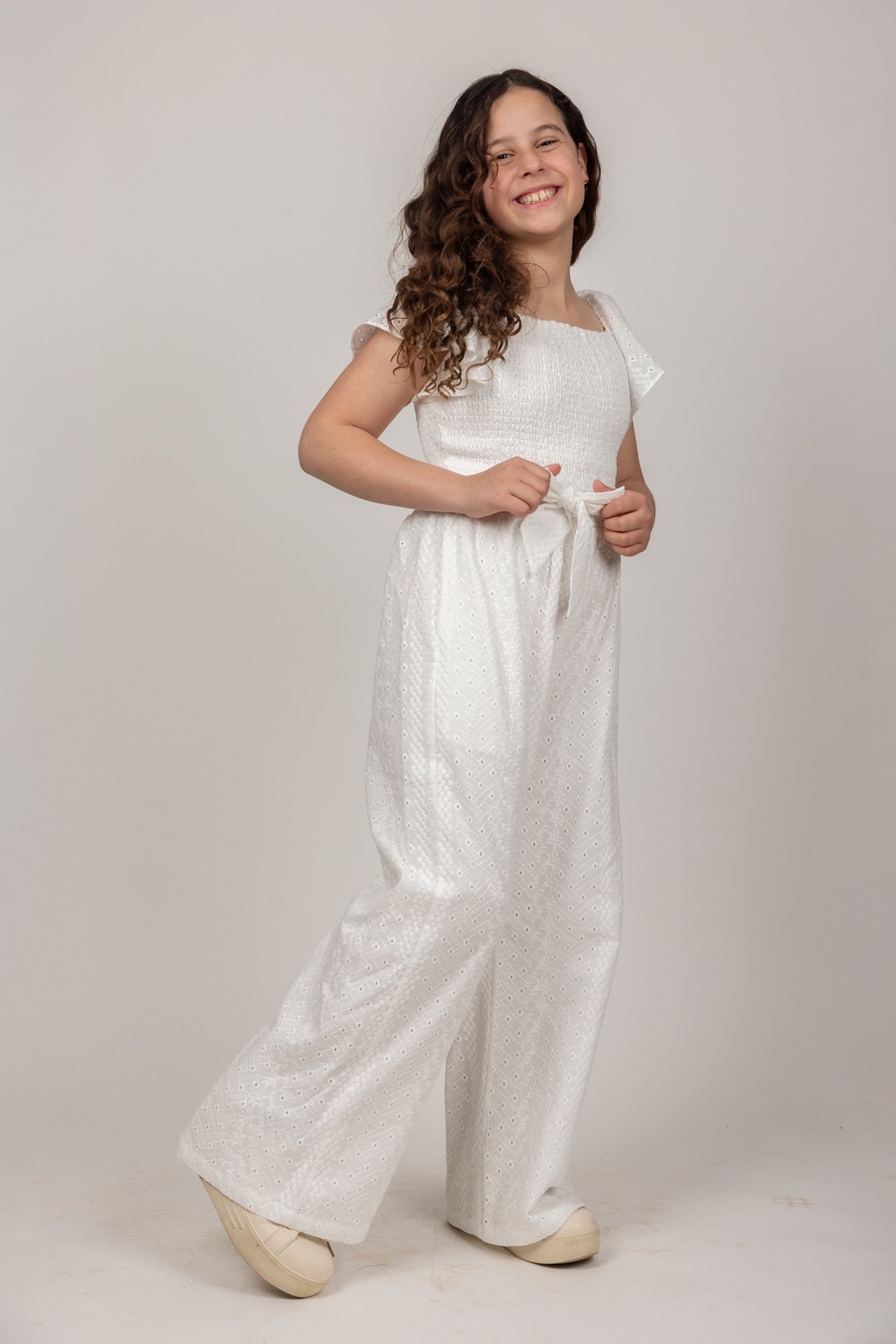 אוברול אורי תחרה לבן